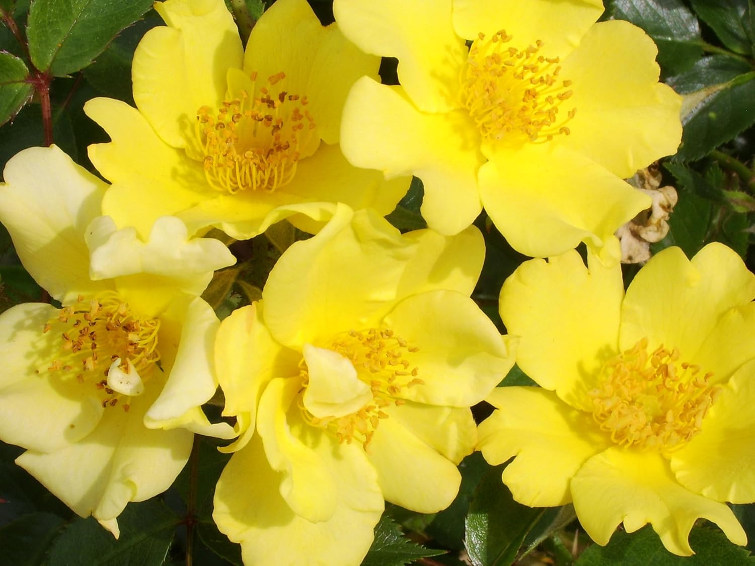 An attractive hardy rose plant with a delicate fragrance, displaying small yellow blooms and green foliage. Ideal for pots and containers.