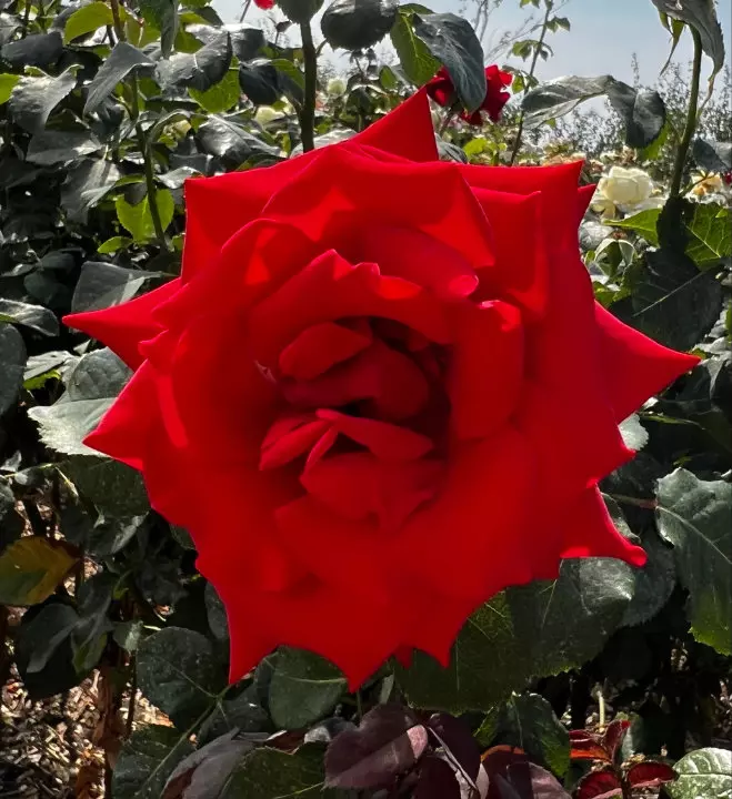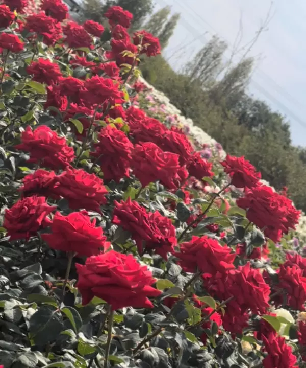 Gorgeous rich red blooms complemented by dark green foliage and a light scent.