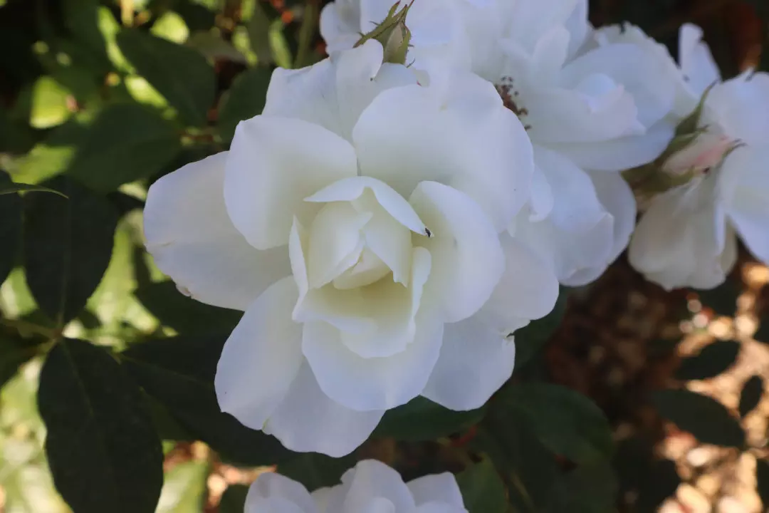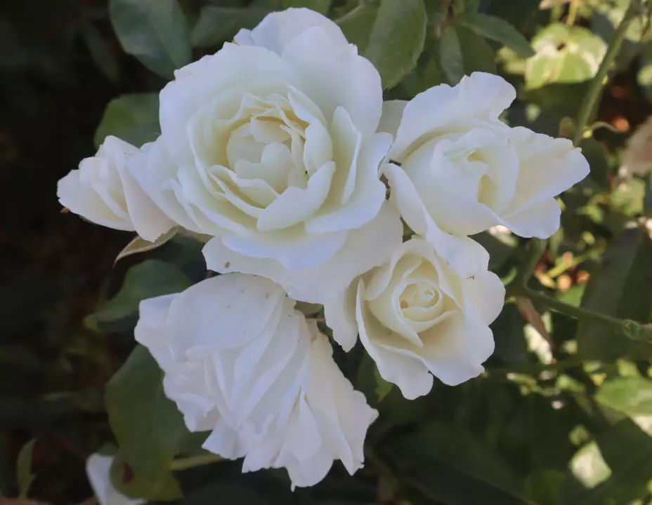 Large clusters of pure white medium sized blooms with occasional tones of pink accompanied by a gentle fragrance and healthy mid green foliage. This variety is a free flowering floribunda rose with continuous flowering throughout the season that’s robust in nature with good resistance to disease.
