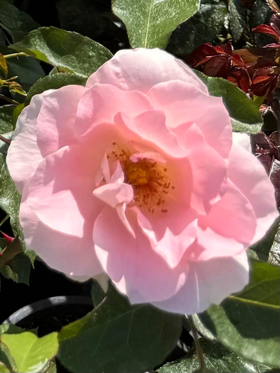 A plant with soft pink, semi-double blooms, a dark green glossy foliage that has a lovely fragrance. The blooms are produced in large clusters that repeat flower throughout the summer from June to October.