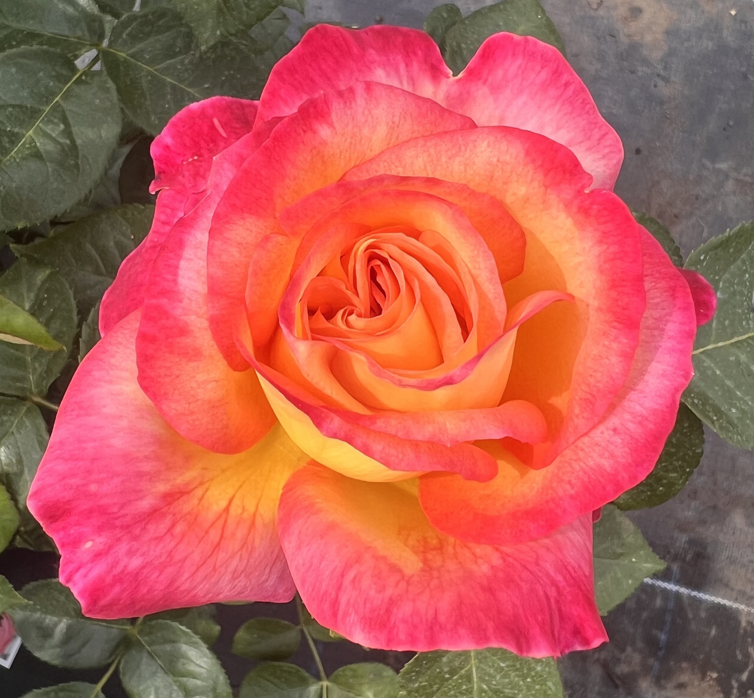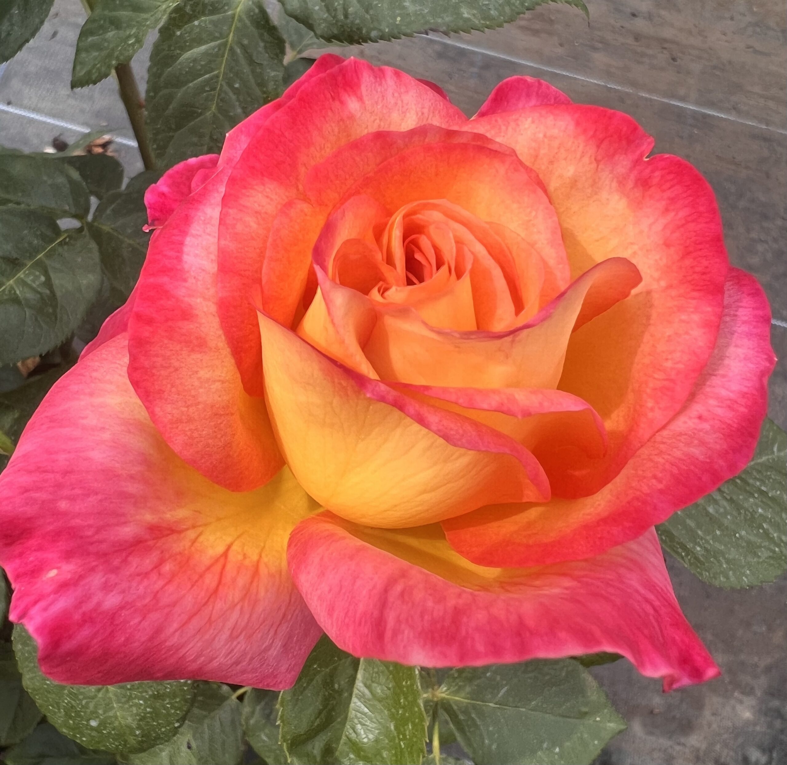 A stunning mix of yellow and pink blooms that carry a lovely citrus fragrance complimented by healthy green glossy foliage. The rose is repeat flowering and a very healthy and robust variey.