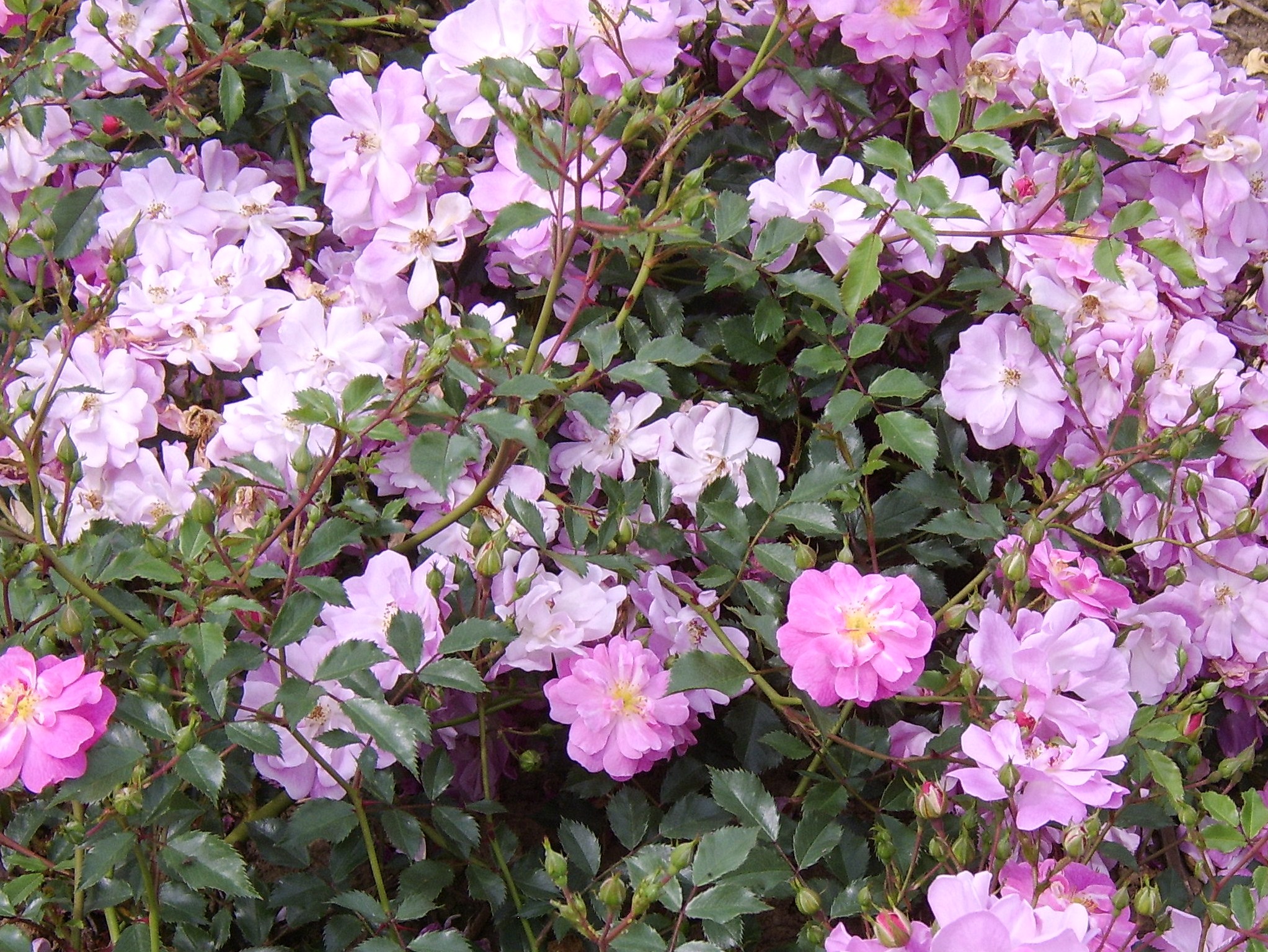 A ground cover rose with small lavender blooms. They have a spicy fragrance with a glossy foliage. They repeat flower through the season. ‘Magic Carpet’ is healthy with good disease resistance and hardiness. They repeat flower throughout the summer.