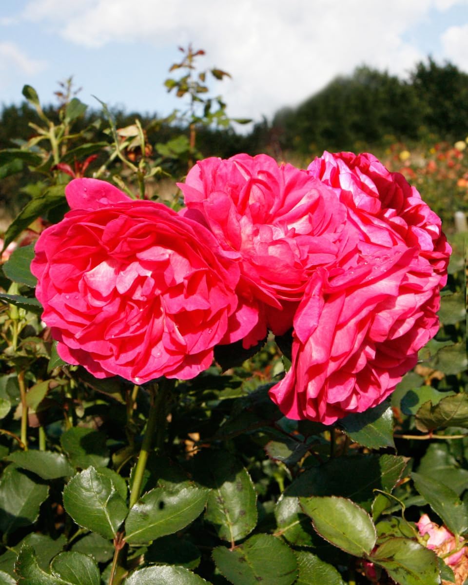 We recommend leaving around 20 to 30 inches between each rose. Depending on the variety, larger roses need more room for the roses to grow, and smaller varieties, like the patios, should have plenty of space with 20 inches.