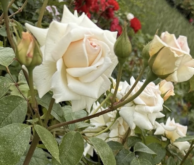 Bare root roses are dormant plants; throughout winter, the plants are effectively sleeping, making it possible for the rose to be almost entirely cut back. Bare root roses are supplied without any soil or flowers and little foliage. They are lifted from the field, cut back, and pruned before being sent out. November to March is the peak time to purchase a rose in this way, as it allows the roots to stabilise before the roses bloom in the summer months.