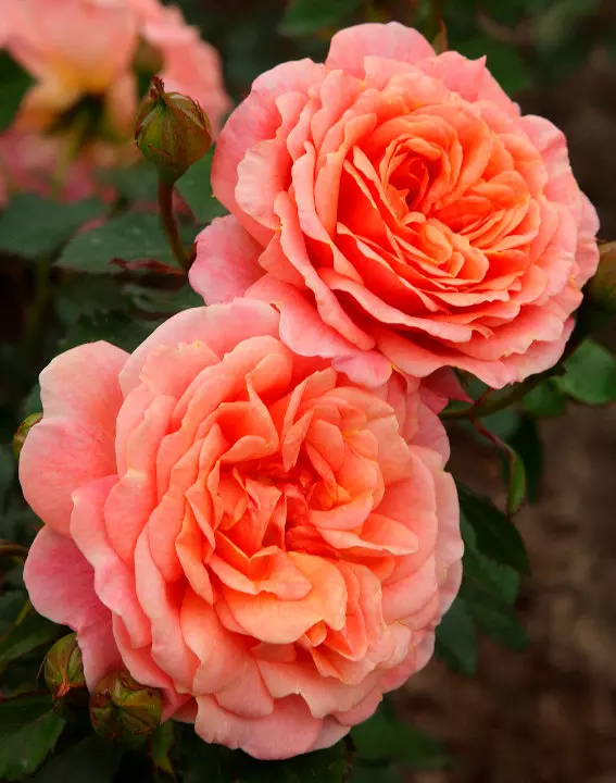 Scented blooms with a blend of apricot, peach and pink blend with healthy dark green foliage. Rose of the Year 2023.