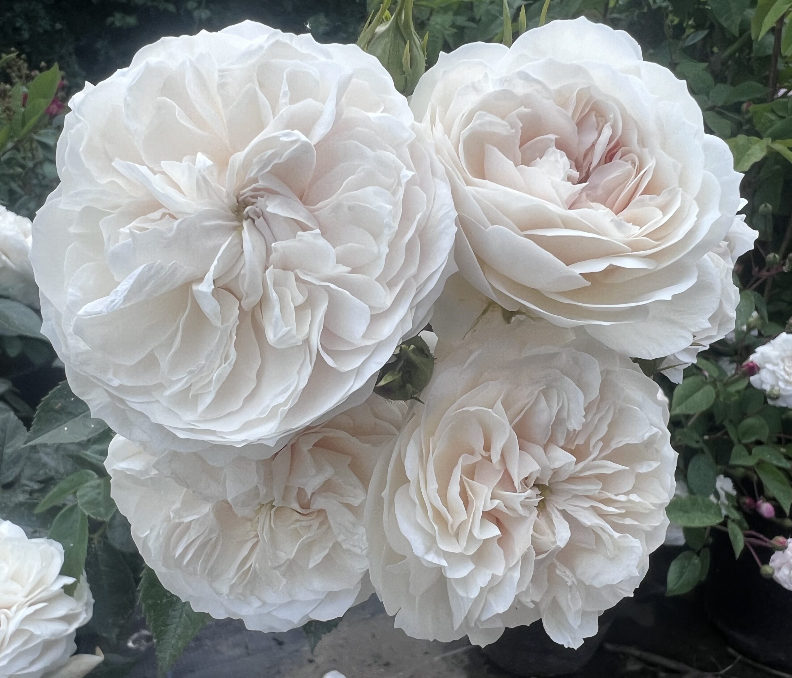 A stunning rose with ivory blooms. They have a mild fragrance with a dark green foliage. They repeat flower through the season. ‘Peter James Richardson’ is healthy with good disease resistance and hardiness.