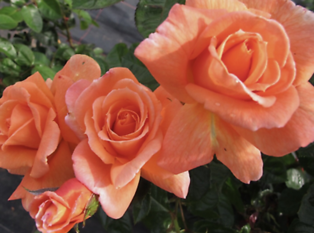 Blooms of a orange and salmon blend with a gorgeous fruity fragrance and glossy dark green foliage.