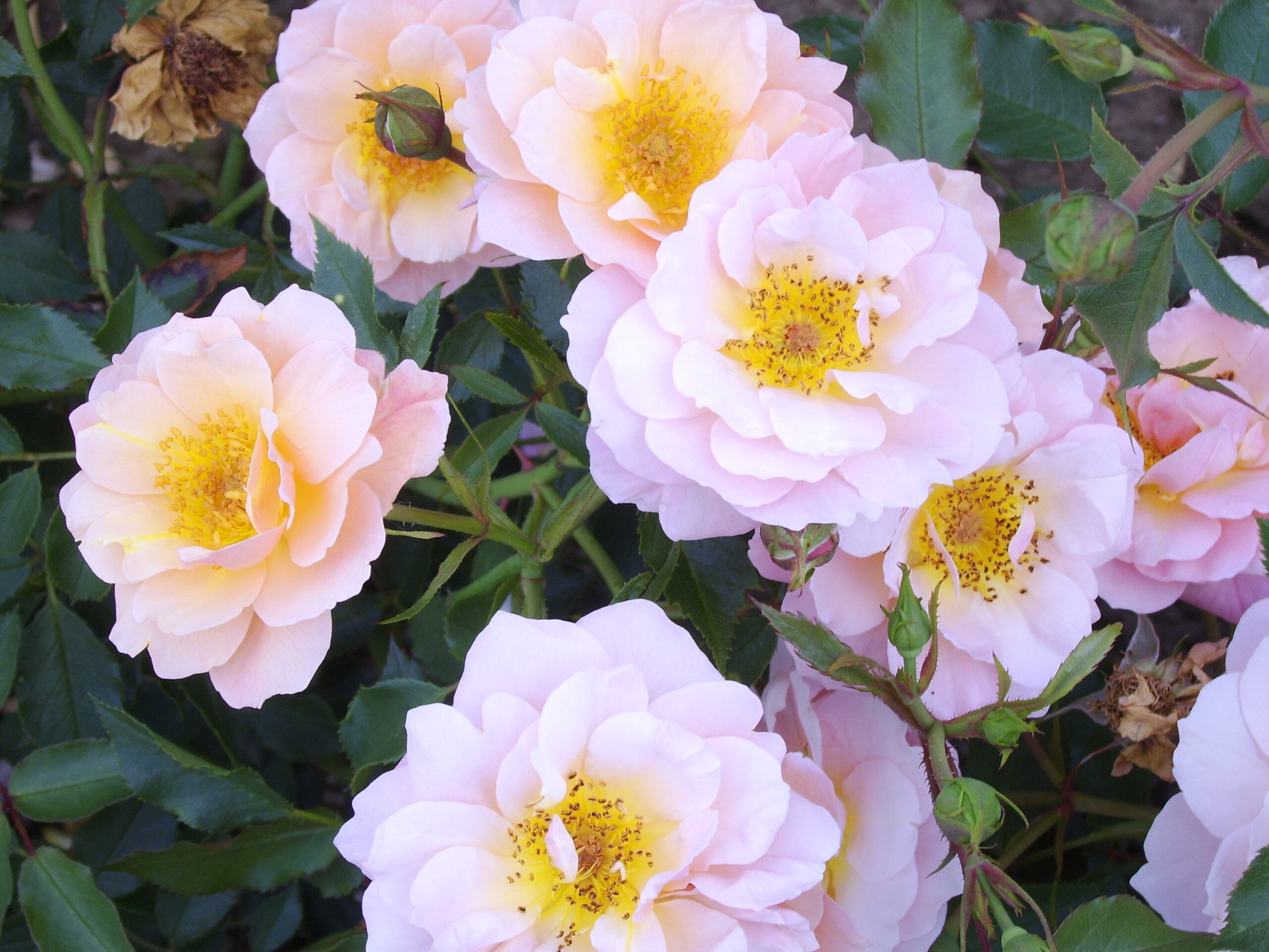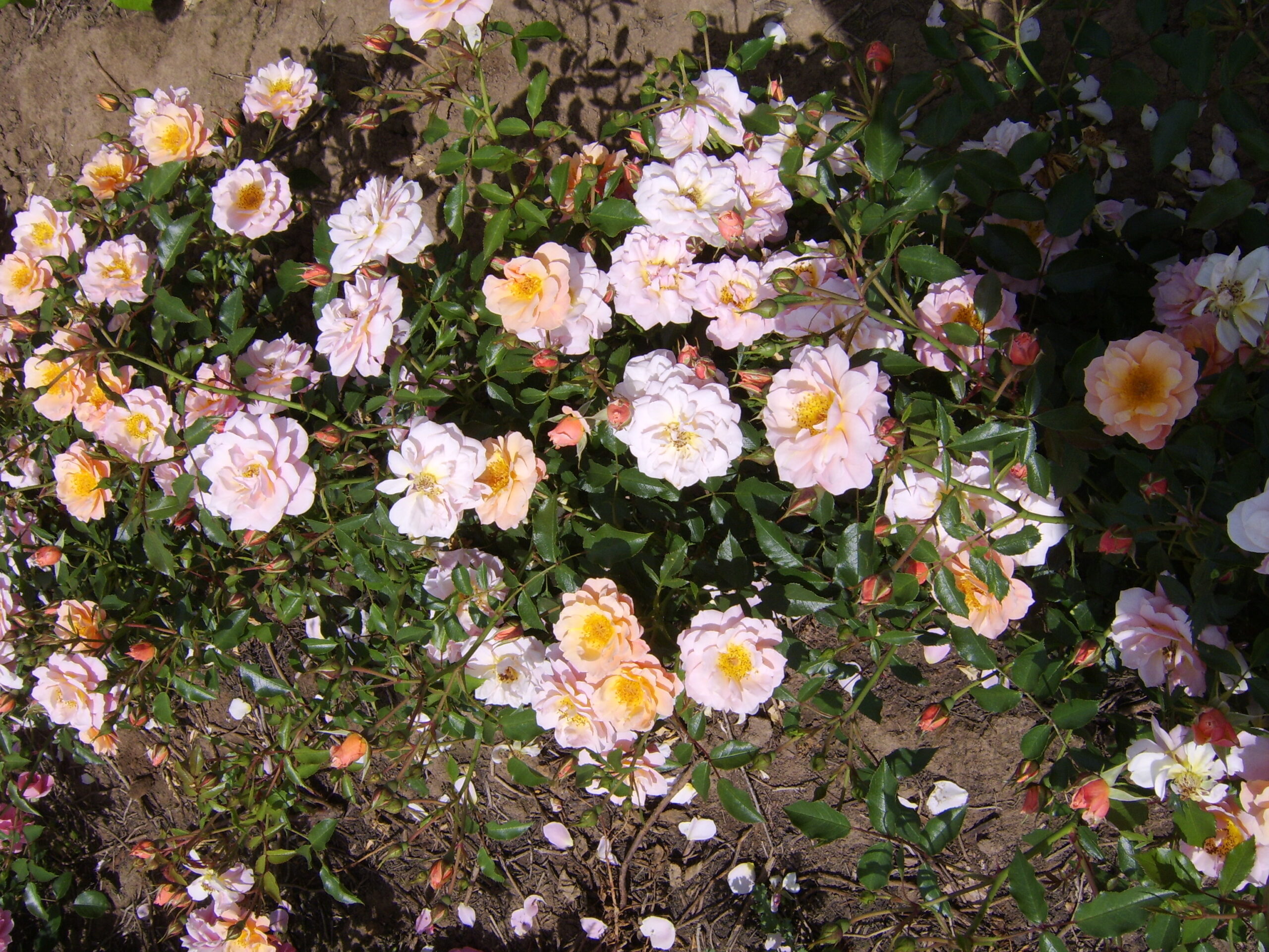 A ground cover rose with pretty clusters of double or semi-double, apricot-buff flowers. They have a mild fragrance with a medium green foliage. They repeat flower through the season. ‘Sussex’ is healthy with good disease resistance and hardiness.