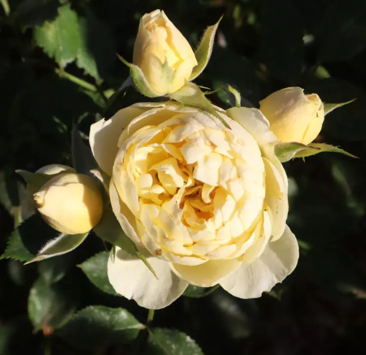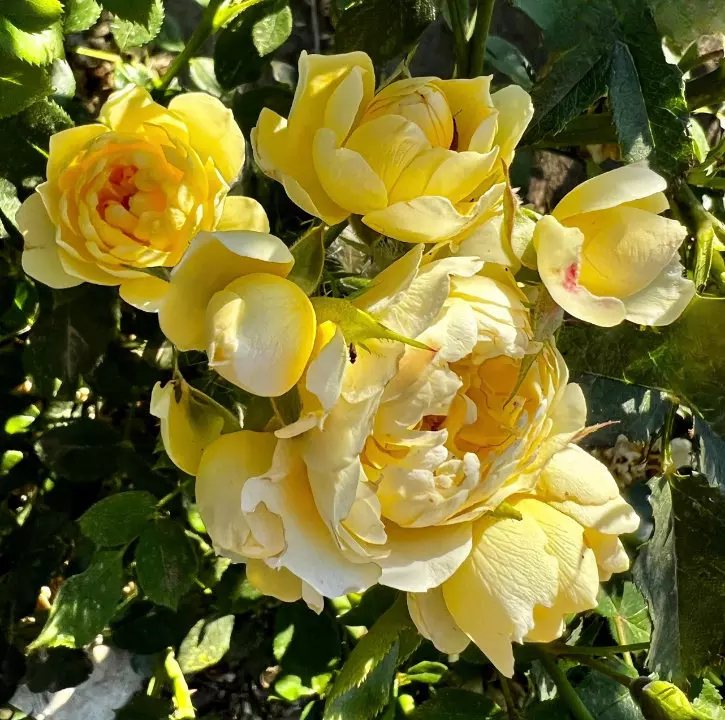 Masses of lightly scented lemon yellow blooms with glossy dark green foliage.
